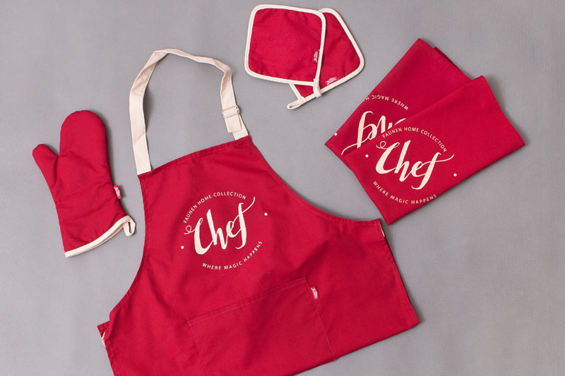 圍裙*1(80╳65cm) 手套*1(32╳17cm) 煲墊*2(17╳17cm) 餐巾*2(45╳45cm) |