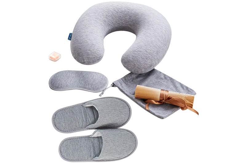 規格:布套充氣枕(35*29cm) +折疊拖鞋(28~29cm)+加大(dà)眼罩+耳塞+收納袋(22*17cm)
